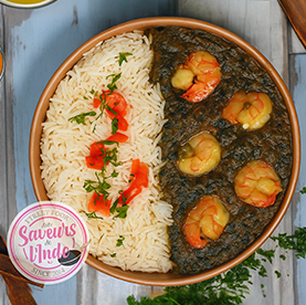 Sauce épinard, crème et ses épices de saveur Servi avec un bol de riz.
