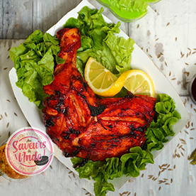 1 Pièce. Cuisse de poulet marinée cuit au tandoori.
