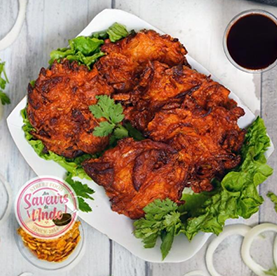5 Beignets d'oignons, pommes de terre, petits pois.